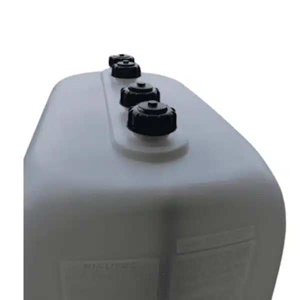 - Conexiones: Cuentan con 4 bocas superiores de 2″ (pulgadas) protegidas con tapones, facilitando la instalación de aspiración, llenado, ventilación y reloj de nivel.