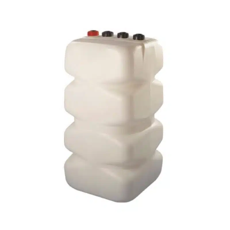 - Conexiones: Cuentan con 4 bocas superiores de 2″ (pulgadas) protegidas con tapones, facilitando la instalación de aspiración, llenado, ventilación y reloj de nivel.