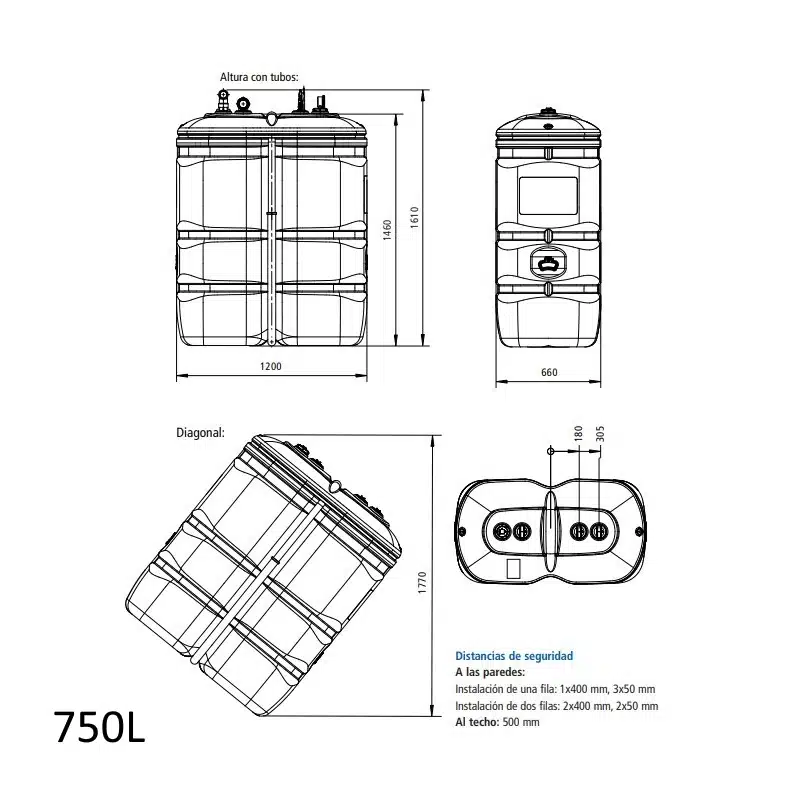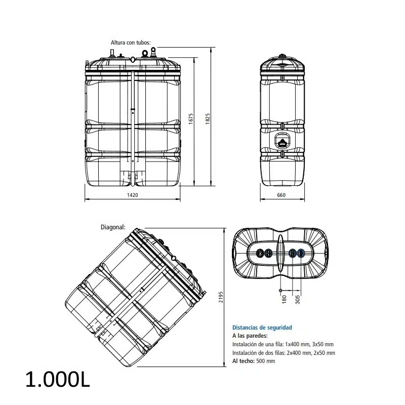 | 750L / 1000L | Viviendas particulares. | Compacto, cabe en casi cualquier sitio. |
