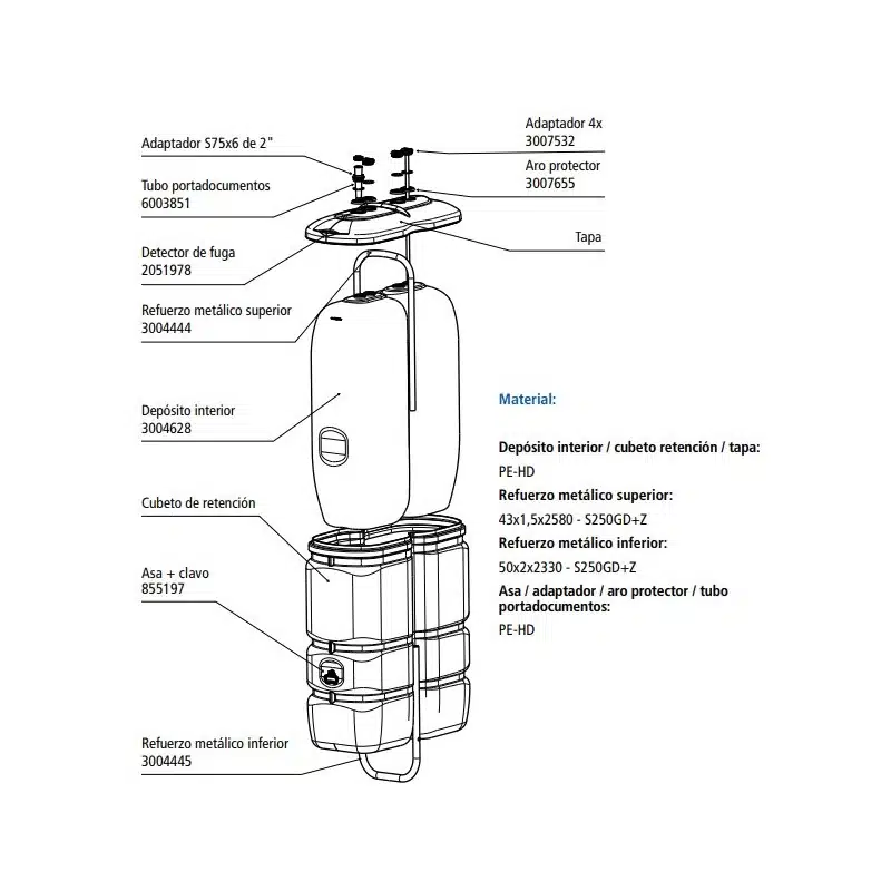 - Seguridad Total: En caso de una fuga improbable en el depósito interno, el líquido queda confinado en el recipiente exterior, evitando desastres medioambientales.