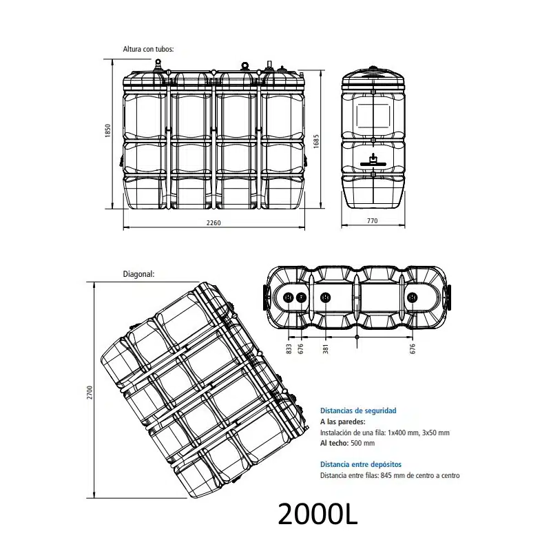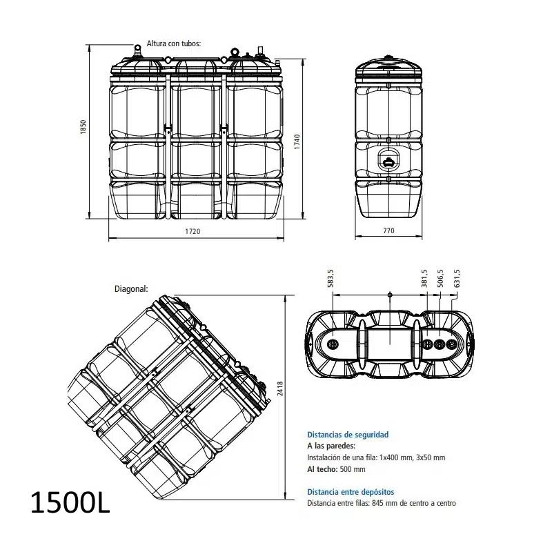 | 1500L / 2000L | Chalets grandes o negocios. | Máxima autonomía sin necesidad de cubetos de obra. |